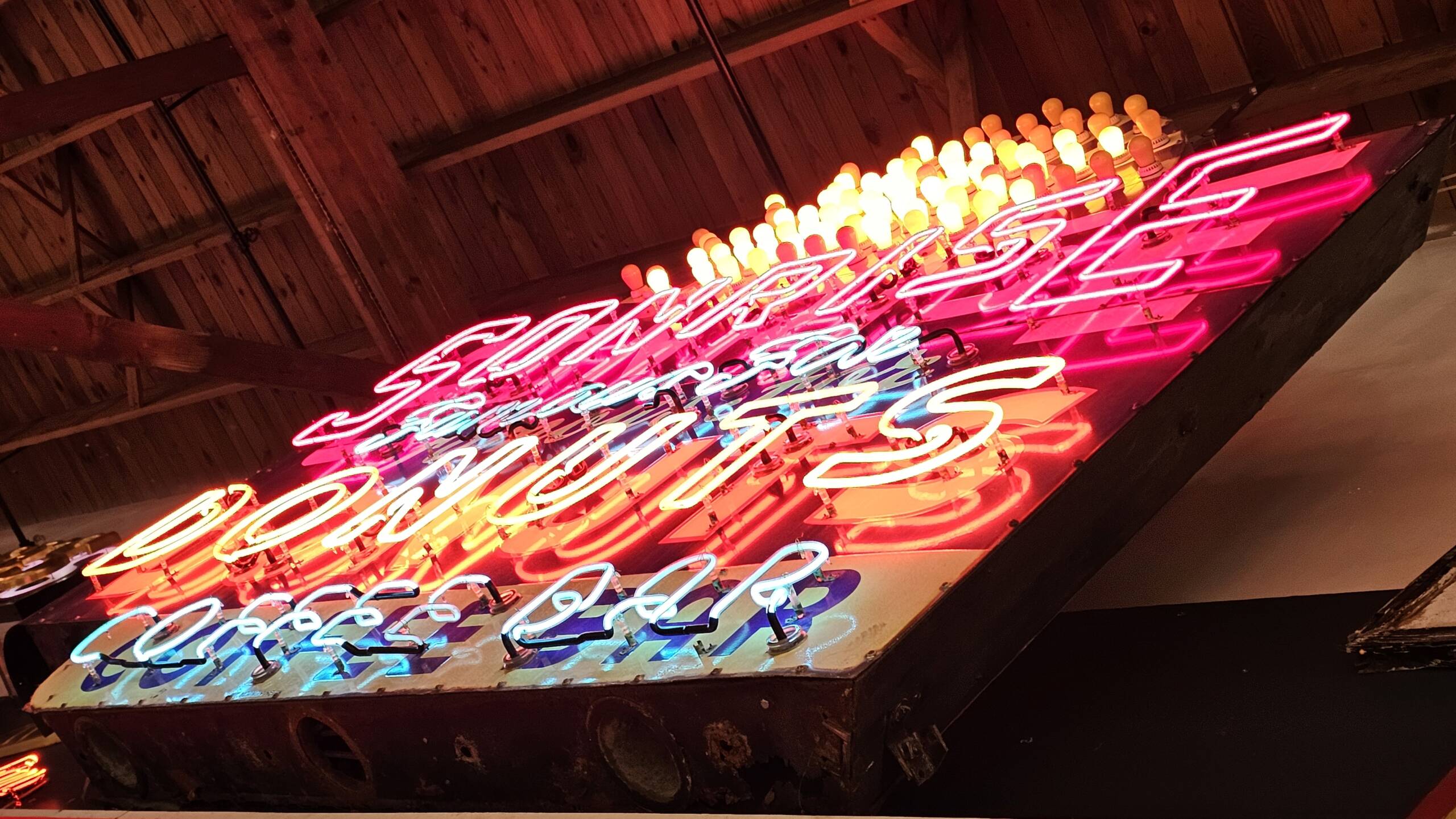 The sign went up for auction and the City of Springfield won the bid at $22,000 in an effort to keep Springfield Route 66 history alive. The restoration of the signs was a collaborative effort with the Springfield Convention and Visitors Bureau. With the assistance of other private donors, the sign was removed from the rooftop where it stood for 70 years. In October of 2019 one of the two restored faces was unveiled during a lighting ceremony in our museum. The second face was later restored and placed on display at Motorheads Bar & Grill.
