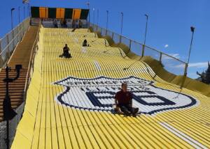 As part of this grass roots effort, the Ace Sign Co. team was engaged to paint a giant Route 66 emblem to kick of the "Slide Down 66" campaign. The slide was dedicated on August 12th, prior to the record breaking attendance at the 2022 Illinois State Fair.